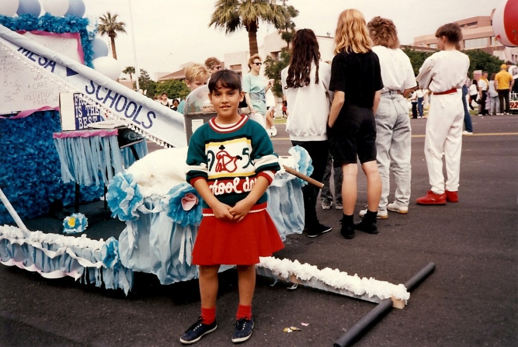In elementary school is when I noticed that my body wasn’t like most of the girls in my classes. They were all so “skinny” and I had some meat on me. I was in dance, gymnastics, and synchronized swimming, and being in a leotard and bathing suit made me so self-conscious and aware of my “larger” frame. I always tried to cover myself up, whether it be with large t-shirts or sweats over my leotards and bathing suits. When I was swimming I felt safe and hidden in the water, but every time I had to get out of the pool, I felt so exposed. It was such an embarrassing feeling; my tummy and large thighs were out where everyone could notice them. Fourth grade is when I went on my first “diet” in hopes that I would lose weight to look more like my peers. Uninformed of what healthy eating or dieting really looked like, I tried eliminating food groups from my meals (mainly meat) and thought eating bland foods, such as plain white rice, was how I was going to lose weight. Of course, none of that worked. I look back at the photos of myself at that age and am sad that I saw myself as overweight. I am sad that I didn’t have a chance to just be a carefree child; oblivious of weight and body size.