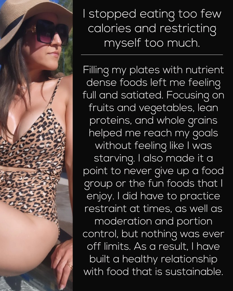 It wasn’t until I was in my twenties, when I as at my heaviest (the first time) that I finally learned what I needed to do to lose weight in order to look and feel healthy. It took time to shift my mindset and to build new, healthier habits and routines. But once I committed to these new habits and a healthier mindset around food and exercise, I reached my goals without it ever feeling like a was on a “diet”. It was just my lifestyle.