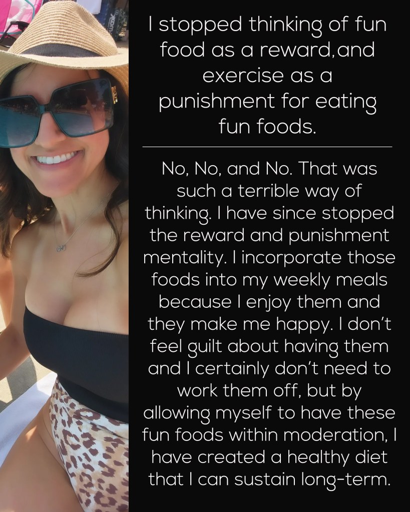 6. I stopped thinking of fun food as a reward or exercise as a punishment for eating fun foods.